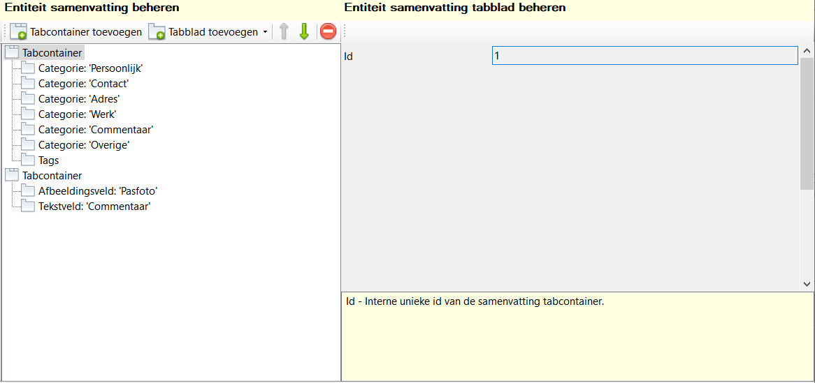 Via the Delete you delete the selected tab container or tab. This action is irreversible, but only becomes final when you save your database.